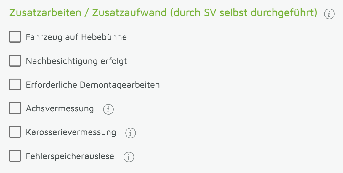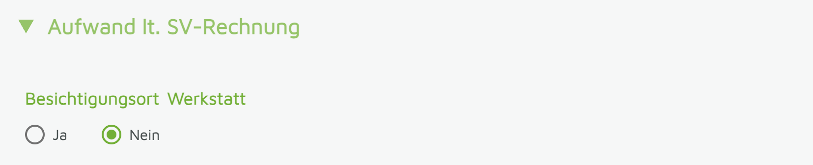 Sofern der Sachverständige das Fahrzeug in der Werkstatt begutachtet hat, wird dies mit der entsprechenden Auswahl festgelegt und bei der Zeitaufwandsberechnung berücksichtigt.