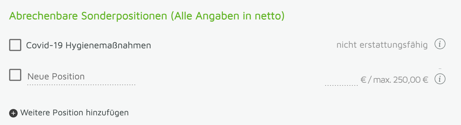 Hinzufügen von Positionen „nicht erstattungsfähig“