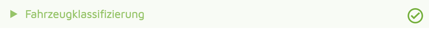 Nach dem Klicken des Buttons „Fahrzeugdaten abfragen und weiter“ verarbeitet das System die eingegebenen Fahrzeugdaten. Die ermittelte Fahrzeugklasse wird rechts in der Ergebnisleiste angezeigt.