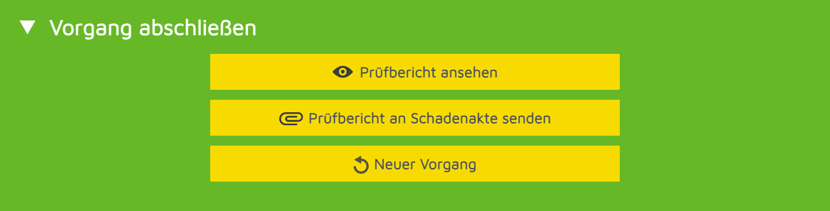 Der Prüfbericht kann auch direkt ohne Ansehen an die Schadenakte gesendet werden, indem der Button „Prüfbericht an Schadenakte senden” angeklickt wird.