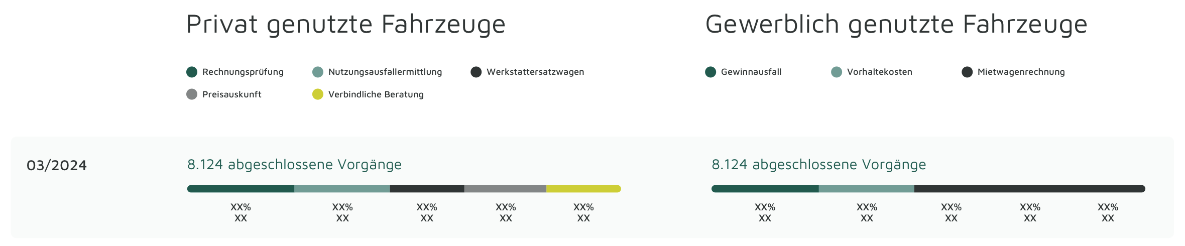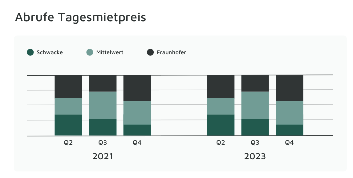 Um die Verteilung von Funktionsaufrufen für verschiedene Funktionen darzustellen, nutzen wir ein kombiniertes Säulendiagramm. Die Legende steht nach Möglichkeit direkt unter dem jeweiligen Segment. Ist das nicht möglich, kann auch hier mit einem Tooltip gearbeitet werden.