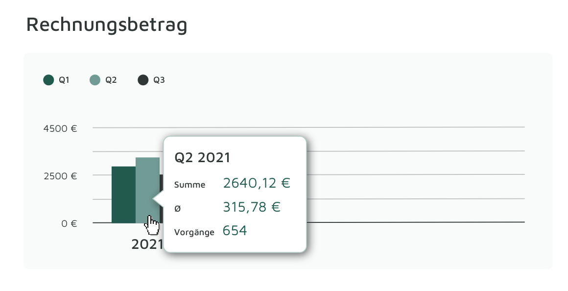 Werden in einem Insight Geldbeträge (etwa Rechnungsbeträge) dargestellt, wird dazu ein Balkendiagramm genutzt. Auch hier werden die Werte nach Mouse-Over in einem Tooltip dargestellt.